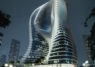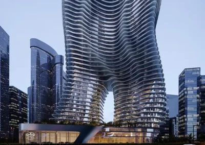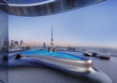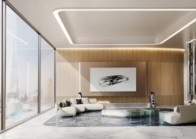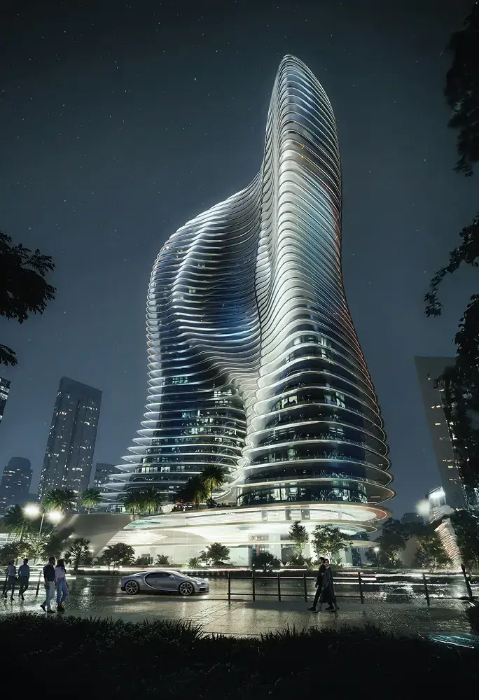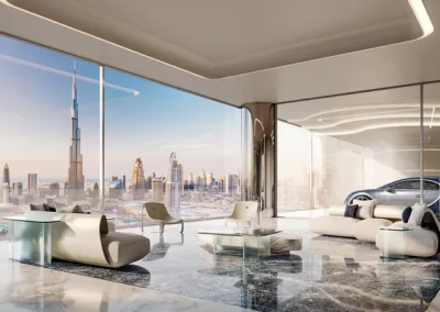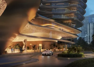 Czerpiąc inspirację z kultowych supersamochodów Bugatti, budynek został zaprojektowany tak, aby oddawać istotę genialnego i wizjonerskiego ducha tej marki, przywołując poczucie energii i wyrafinowania charakterystyczne dla Bugatti. Ta wyjątkowa rezydencja wyróżnia się najwyższej klasy wykończeniami, mistrzowskim rzemiosłem oraz nowoczesnym systemem inteligentnego domu, stworzonym w oparciu o DNA Bugatti – nieustannie przekraczającym granice możliwego.