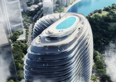 Wyobraź sobie, że budzisz się przy dźwięku fal rozbijających się o brzeg i wychodzisz na taras, by podziwiać zachwycający widok prywatnej plaży. Budynek czerpie inspirację ze stylu Lazurowego Wybrzeża, oddając ducha L’Art de Vivre – sztuki życia.
